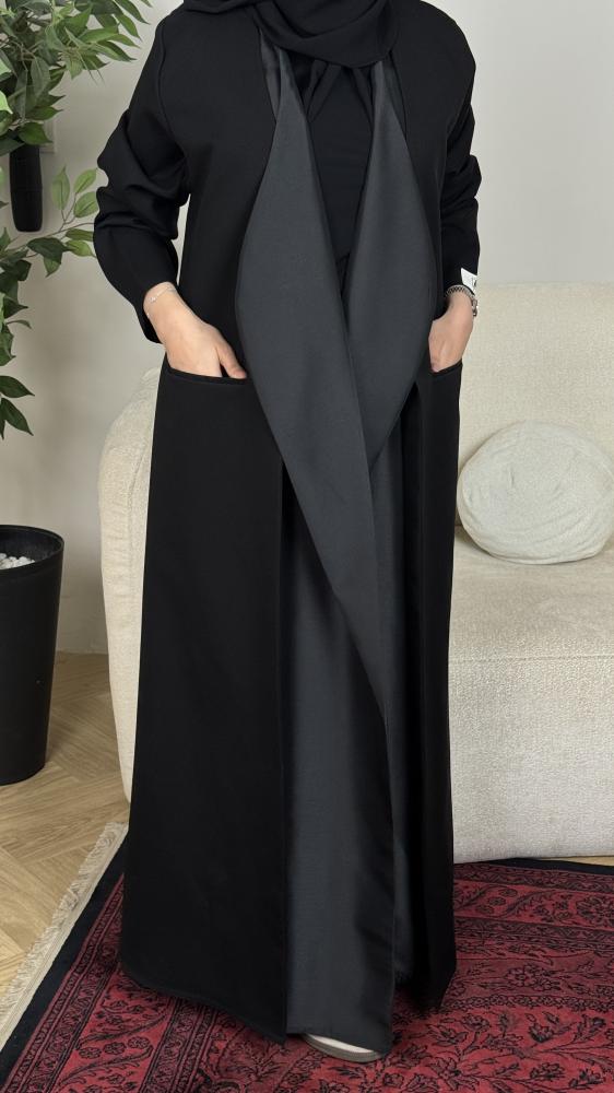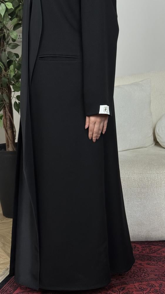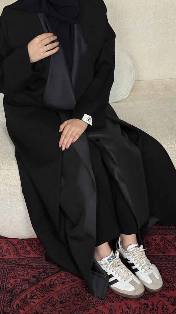 من الخارج: قماش أسود فاخر بوقفة مثالية.